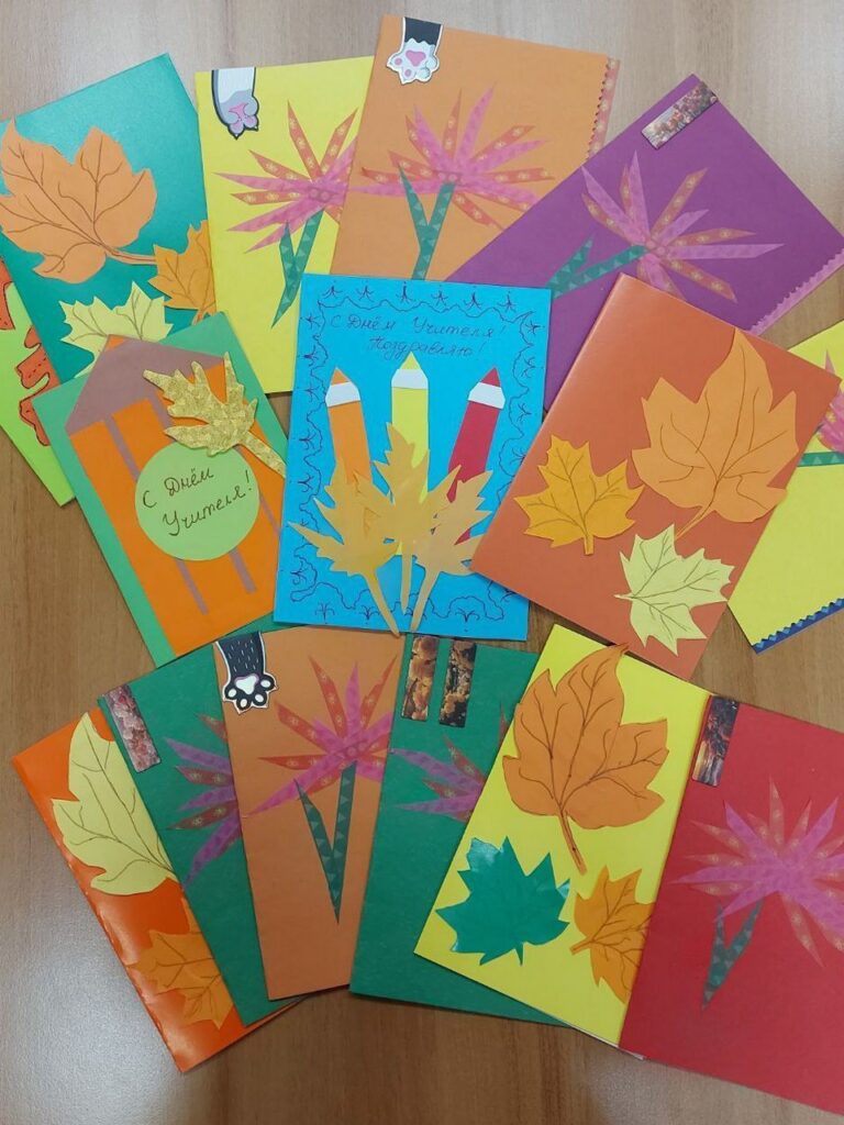 Ребята подготовили для учителей поздравительные открытки с теплыми пожеланиями.