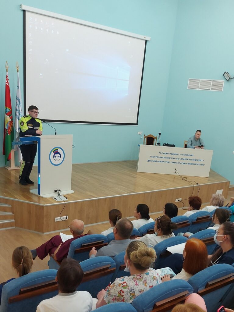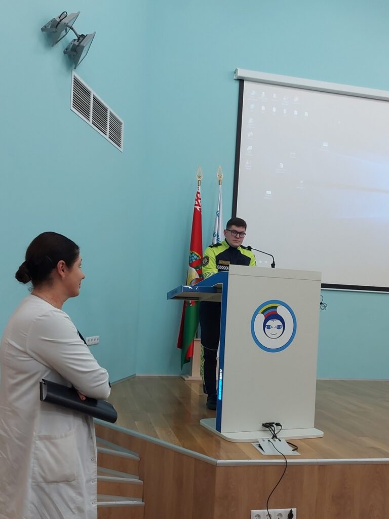 Инспектор ДПС привел статистику дорожно-транспортных происшествий в Республике Беларусь. Лектором было отмечено, что смертность и травматизм на дорогах связаны не столько с увеличением количества автомобилей и интенсивностью движения, а скорее с недостатком культуры поведения водителей и пешеходов.