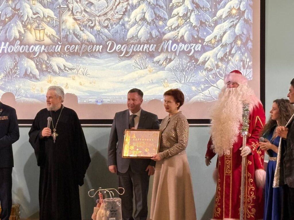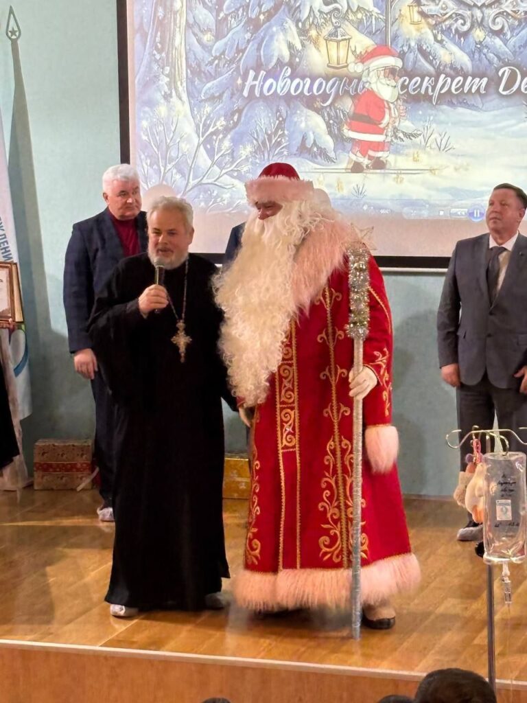 Далее в актовом зале пациентов Центра ожидало настоящее новогоднее представление, поздравление и подарки от гостей.