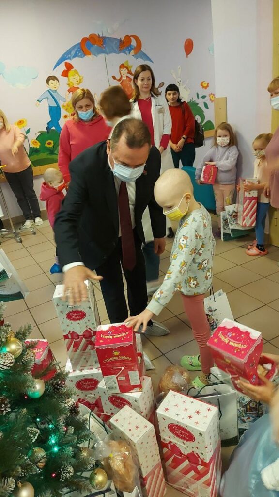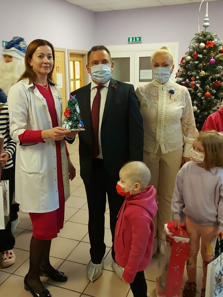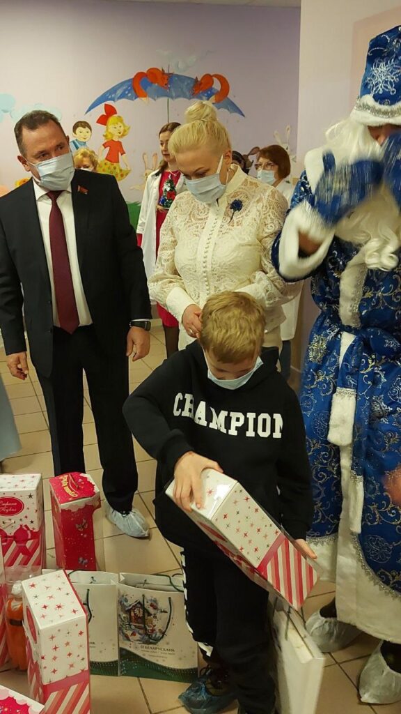 Сегодня в преддверии новогодних праздников заместитель председателя Постоянной комиссии Совета Республики Национального собрания Республики Беларусь по экономике, бюджету и финансам, председатель правления Беларусбанка Виктор Ананич и председатель ОО «Белорусского союза женщин» Беларусбанка Алла Райцес посетили Центр детской онкологии, гематологии и иммунологии, чтобы поздравить юных пациентов с наступающим Новым годом и пожелать им скорейшего выздоровления.