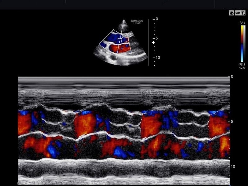 В РНПЦ исследование проводится на аппаратах экспертного класса (например, GE Logiq, Esaote MyLab или аналогичных), оснащенных специализированными кардиологическими датчиками и пакетами программ для углубленного анализа. Аппаратура позволяет проводить исследование в стандартных режимах (М-режим, 2D-режим) и всех режимах допплера (спектральный, цветовой, тканевой).