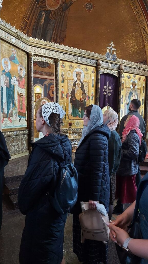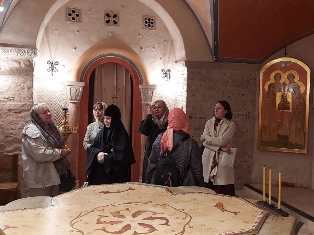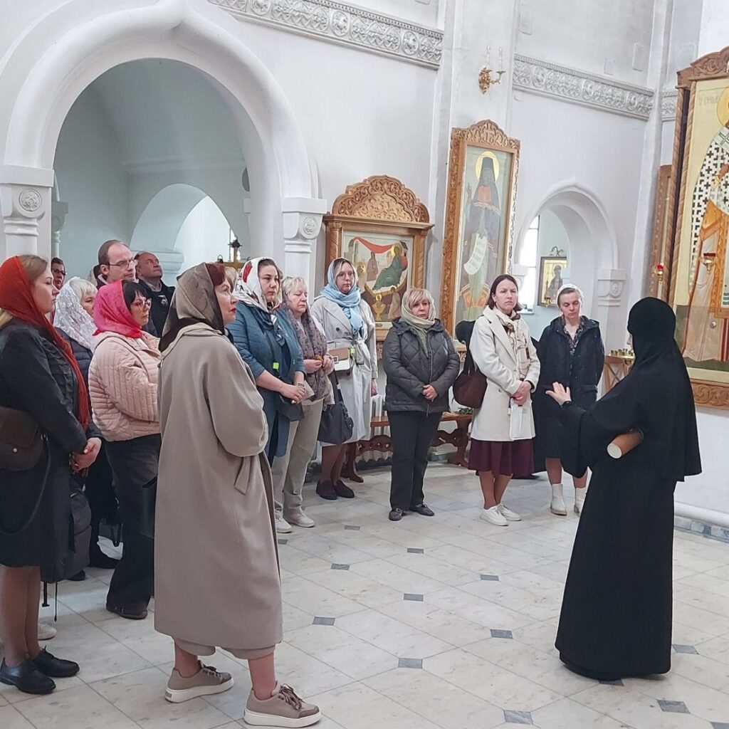 Во время посещения храмов монастыря монахиня Иулиания рассказала в честь каких святых они освящены, особенности архитектуры и росписи, интересные факты жития святых.