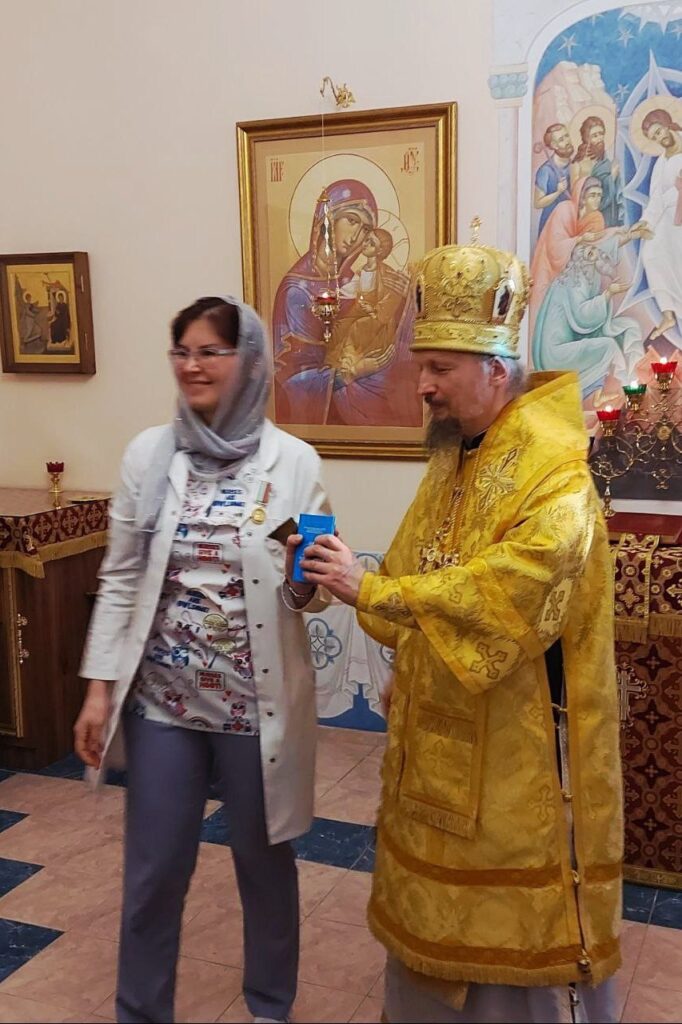 Грамотой Патриаршего Экзарха за непосредственное постоянное взаимодействие с пациентами по вопросам духовной помощи награждена Елена Клочко.