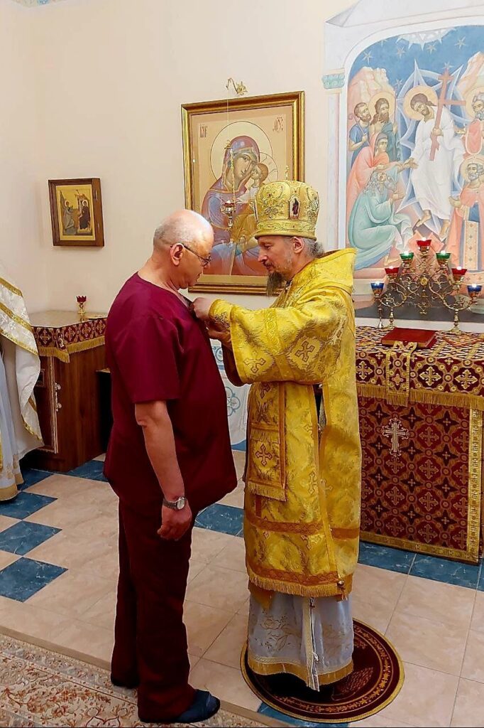В рамках мероприятия, после завершения Божественной литургии Владыко Вениамин обратился с пастырском словом к собравшимся и отметил медалями и грамотами сотрудников Центра и священнослужителей.