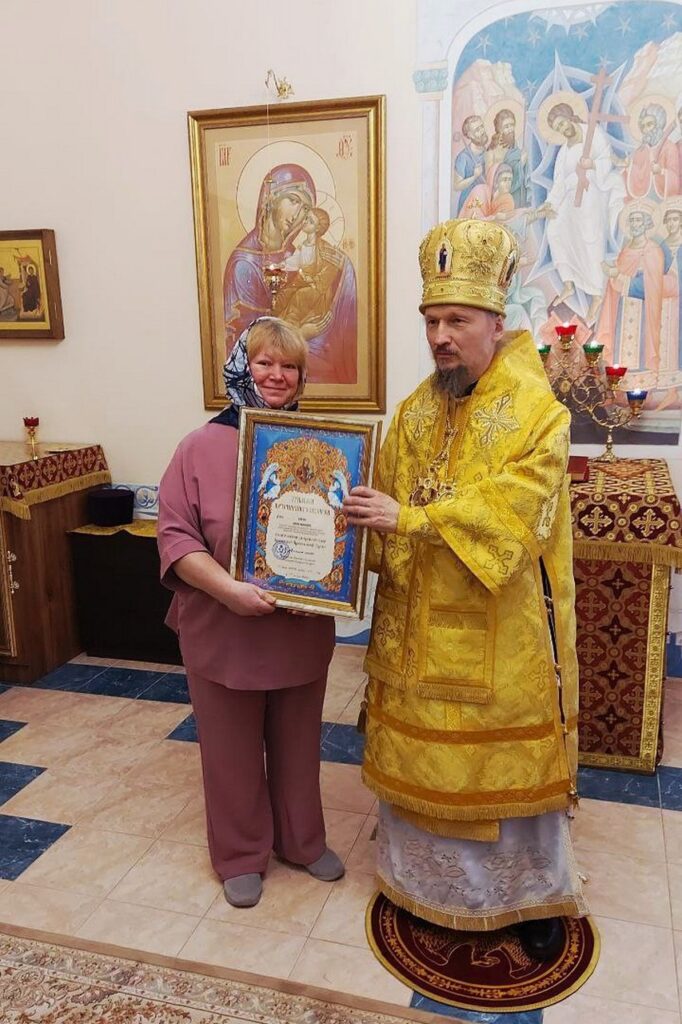 Медалью Святой Блаженной Валентины Минской за непосредственное постоянное взаимодействие с пациентами по вопросам духовной помощи, помощь в организации и проведении Богослужений была удостоена Наталья Шимко.