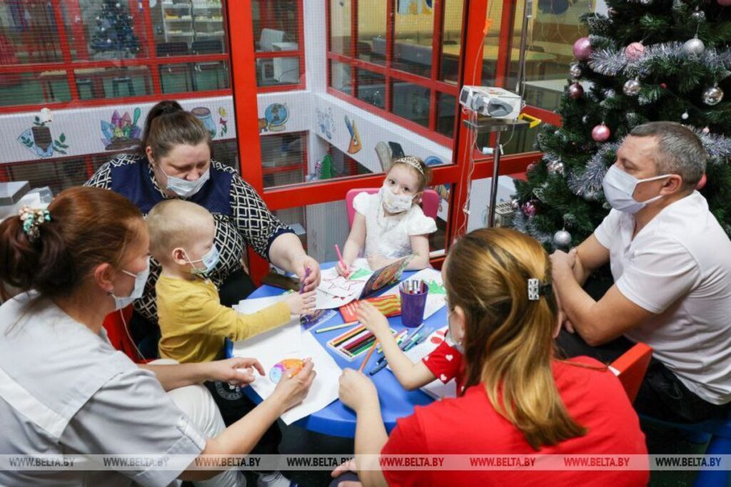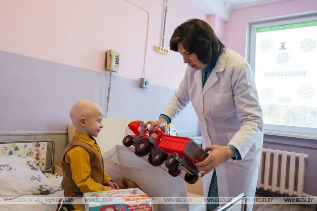 Председатель Совета Республики Наталья Кочанова поздравила маленьких пациентов, их родитилей, а также коллектив РНПЦ детской онкологии, гематологии и иммунологии с наступающими новогодними и рождественскими праздниками.