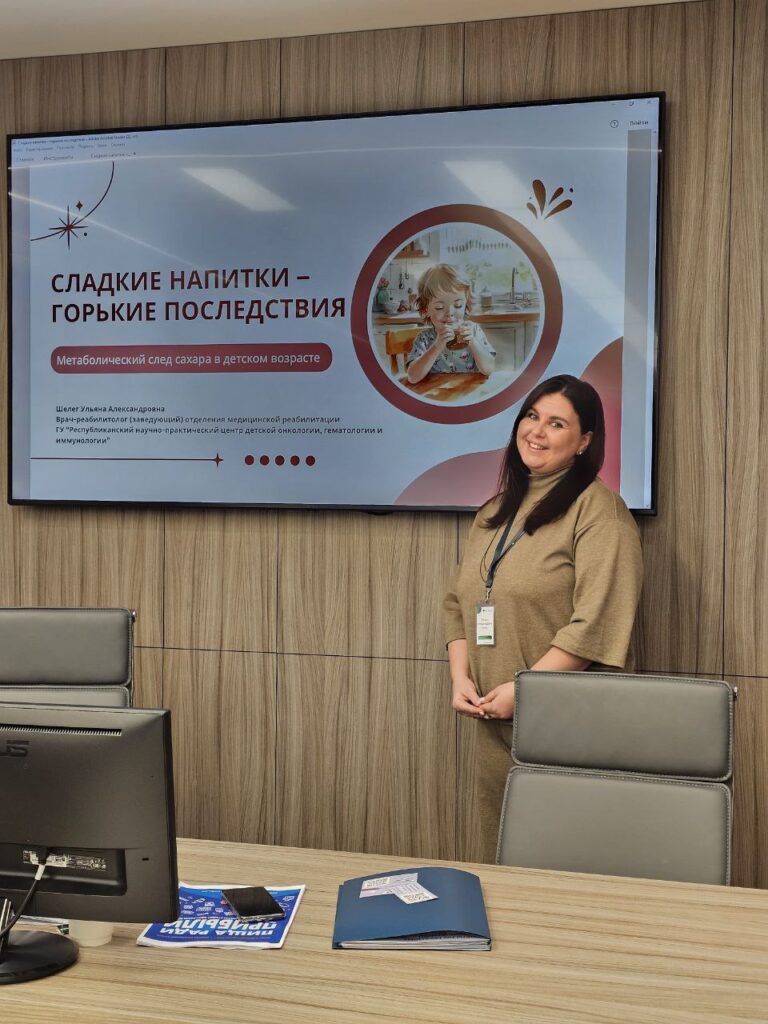 Анжелика Солнцева рассказала об эпигенетических факторах,  влияющих на развитие раннего ожирения, а Ульяна Шелег — о роли в формировании избыточной массы тела у детей употребления сахаросодержащих напитков. На мероприятии были обсуждены вопросы профилактики избыточной массы тела и ожирения у детей, популяризации здорового образа жизни, питания в организованных детских коллективах. Белорусские производители питания рассказали о линейках продуктов питания со сниженным содержанием сахара для детей.