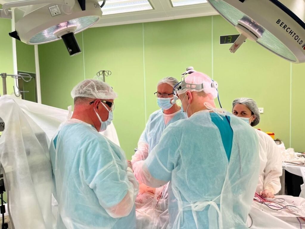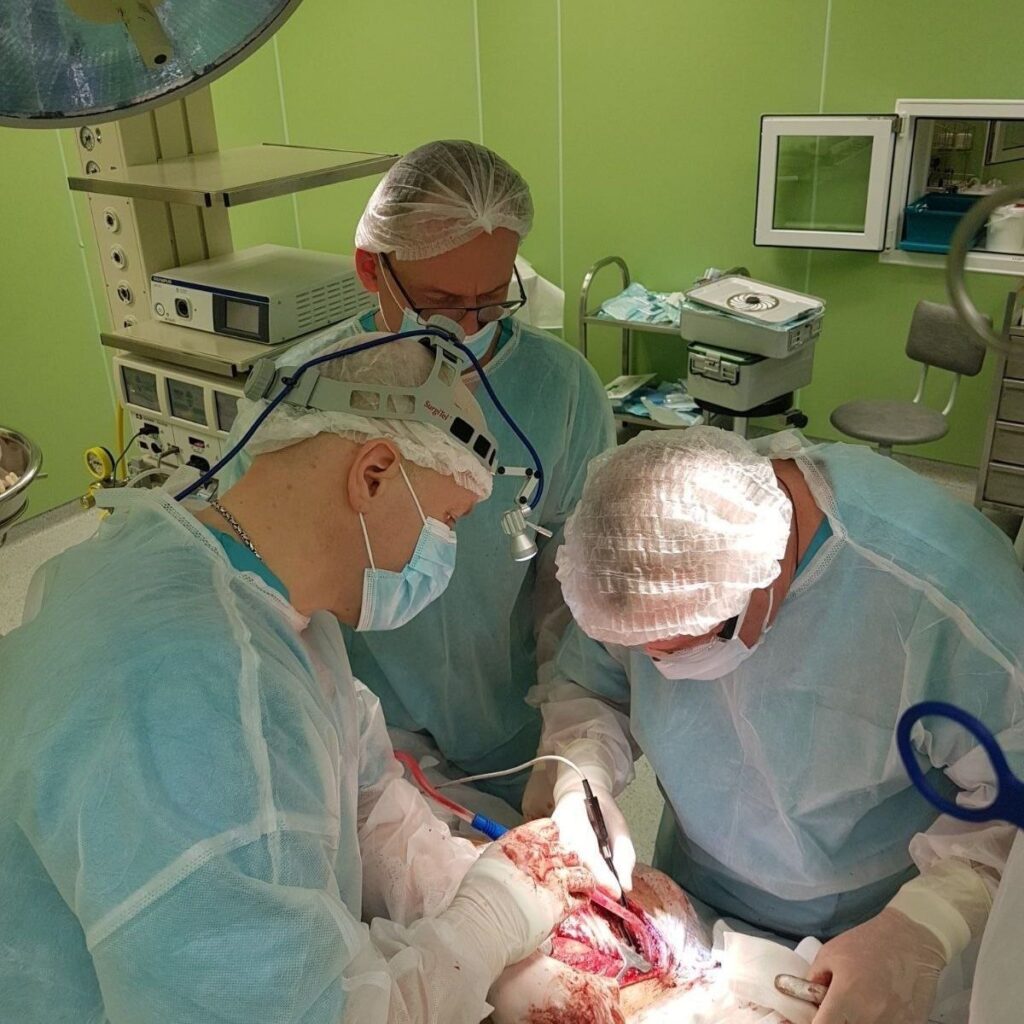 Это стало возможным благодаря совместной работе специалистов трех ведущих учреждений здравоохранения Республики: заведующему операционным блоком РНПЦ ДОГИ Артуру Шиманскому, заведующему лабораторией повреждений и заболеваний позвоночника и спинного мозга РНПЦ травматологии и ортопедии (руководителю Республиканского спинального центра) Андрею Бабкину, заведующему лаборатории торакальной онкопатологии РНПЦ ОМР им. Н.Н. Александрова Сергею Еськову.